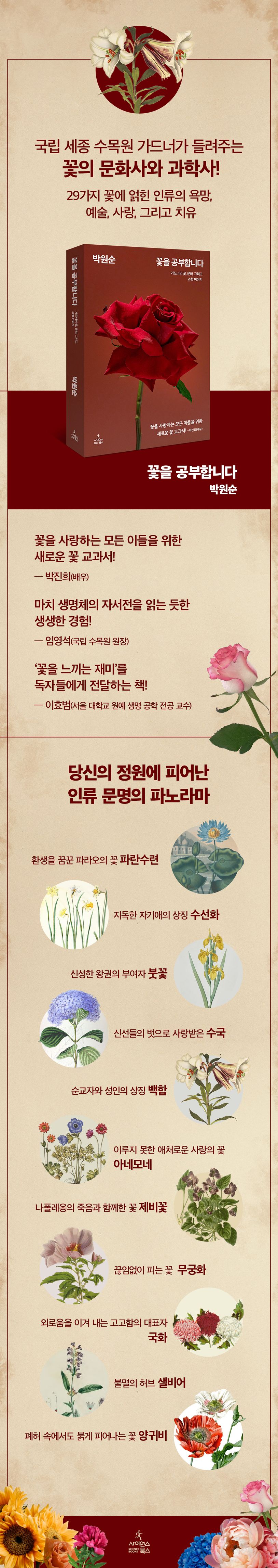 이번에 ㈜사이언스북스에서 출간된 박원순의 『꽃을 공부합니다: 가드너의 꽃, 문화, 그리고 과학 이야기』는 2010년대 후반 이후 활발해진 이 ‘꽃 생활화’ 운동에서 나름 역할을 해 온 한 가드너의 최신작이다.