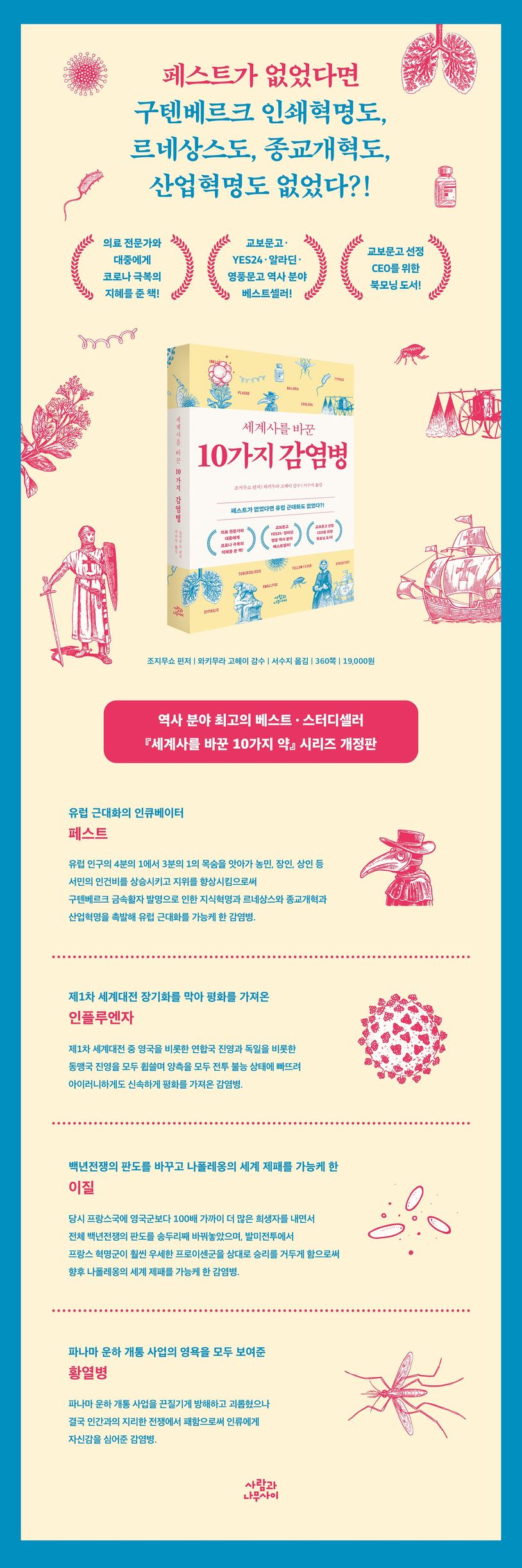 ☞ 이번에 출간된 『세계사를 바꾼 10가지 감염병』은 2021년 8월 18일 출간되었던 『세계사를 바꾼 10가지 감염병』을 동일한 제목으로, 새롭게 표지 디자인하여 출간한 책입니다. 참고해주시기 바랍니다.