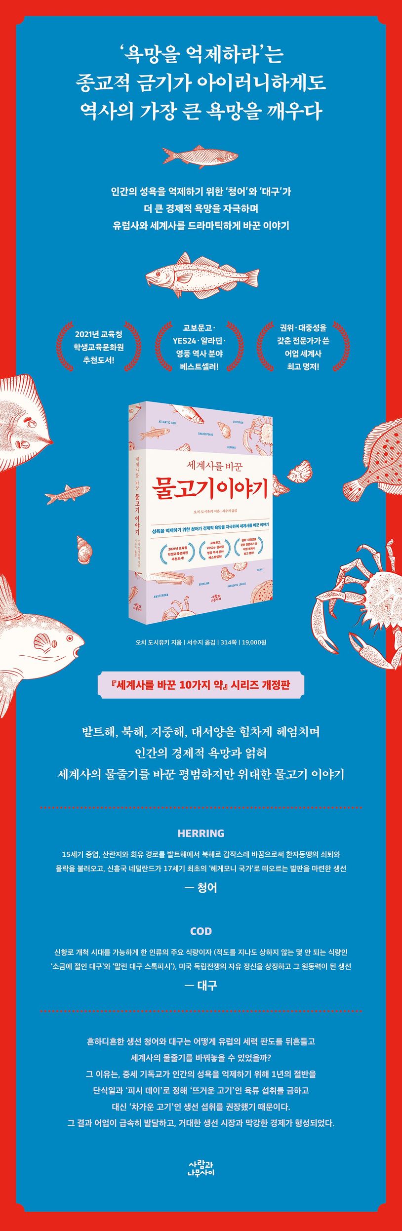 『세계사를 바꾼 물고기 이야기』는 2018년 5월에 출간되어 65주 연속 교보문고 역사 분야 베스트셀러였던『세계사를 바꾼 10가지 약』과 2019년 8월에 출간되어 교보문고 선정 ‘2019년을 빛낸 역사책 100권’ 1위를 차지했던 사람과나무사이 출판사의 ‘세계사를 바꾼’ 시리즈 세 번째 책을 이번에 제목을 약간 바꾸고 새롭게 표지 디자인하여 개정 출간한 아이템이다.
