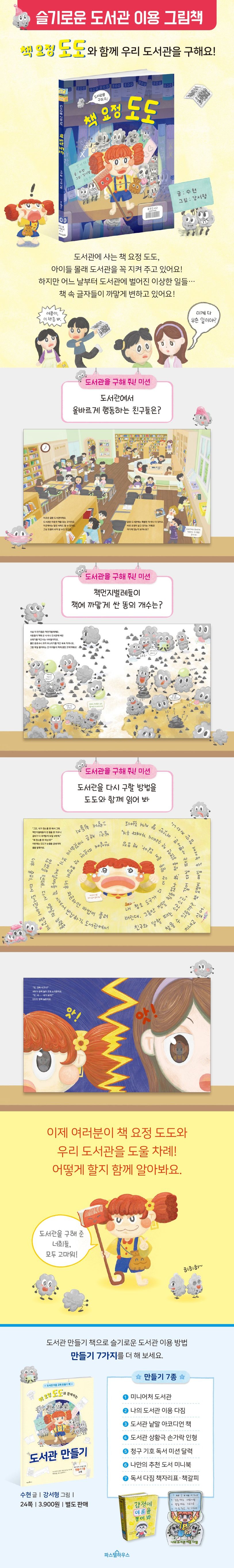 그림책에서 읽은 내용들을 다시 쓰고, 찾고, 만들기(7종 수록) 할 수 있는 활동책도 함께 들어 있어요(초판 한정). 집에서, 학교에서, 기관에서 어린이 독서교육, 도서관 교육에 유용한 자료로 써 보세요. 다 하고 나면 도서관이라는 장소가 더욱 즐겁고 사랑스런 곳이 될 거예요. 도서관의 책들도 아주 소중해질 거고요.