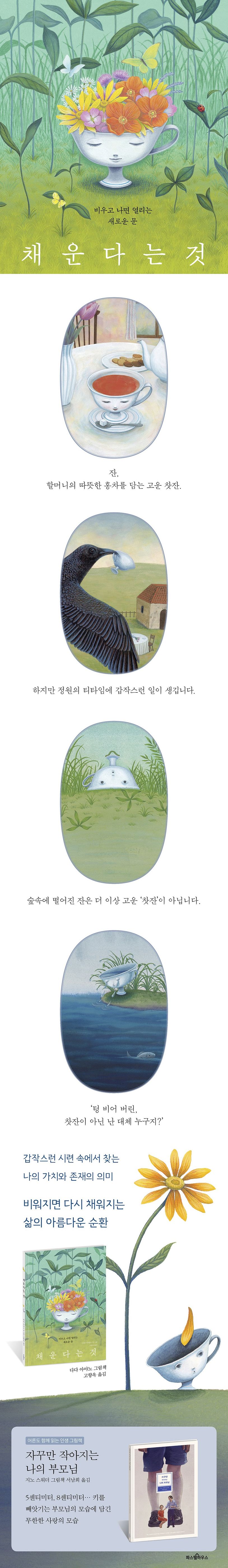 채우고, 비우고, 또 채우는 삶의 이치, 삶을 비워 내는 변화를 유연하게 받아들이도록 위로합니다. 내가 아는 삶보다 더 넓고 신비로운 미지의 삶을 여행하는 우리들에게, 변화와 시련도 받아들이며 더 넓어지고 깊어지는 모든 이들에게 선물이 될 그림책입니다.