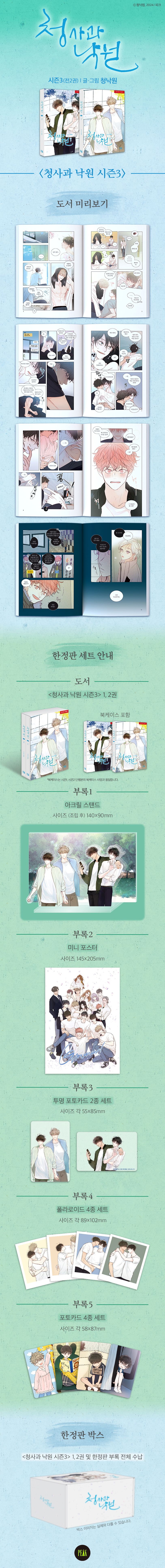시즌3 단행본은 총 2권으로, 각각 프롤로그~본편 24화, 본편 25화~외전 12화까지를 단행본 판형으로 재편집하였으며, 출간을 기념하여 종이책만의 특별한 표지로 작업하였습니다. 또한 한정판 세트에는 표지 일러스트로 제작한 아크릴 스탠드와 투명 포토카드 세트, 새로운 일러스트로 제작한 포토카드 세트와 폴라로이드 세트, 미니 포스터 등 풍성한 부록을 포함하여 소장 가치를 높이고 있습니다.