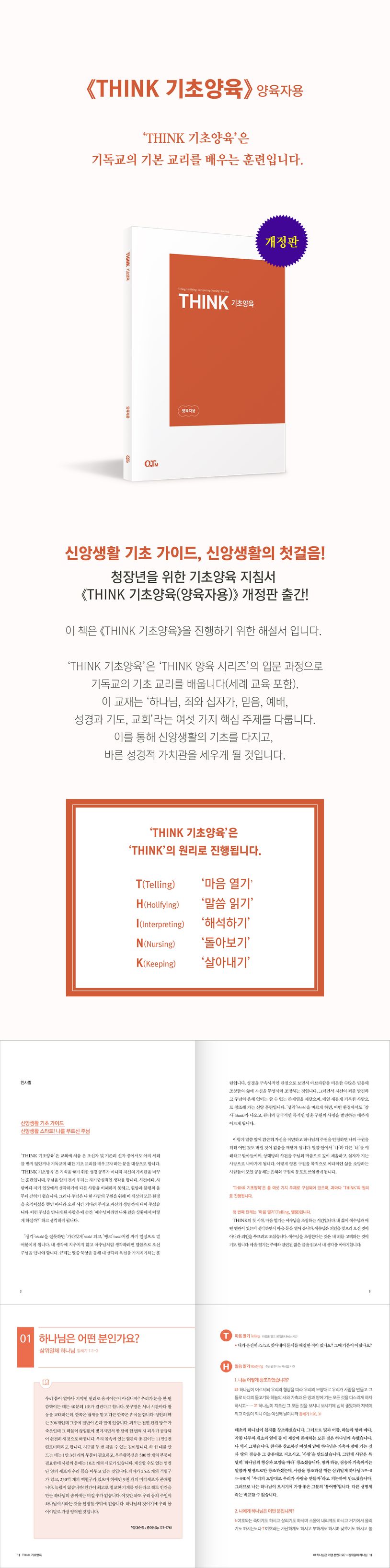 QTM(대표 김양재 목사)에서 청장년을 위한 기초양육 지침서 《THINK 기초양육(양육자용)》 개정판을 출간했습니다. 본서는 《THINK 기초양육(동반자용)》교재로 기초 교리 교육 및 세례 교육을 진행하기 위한 해설서입니다.