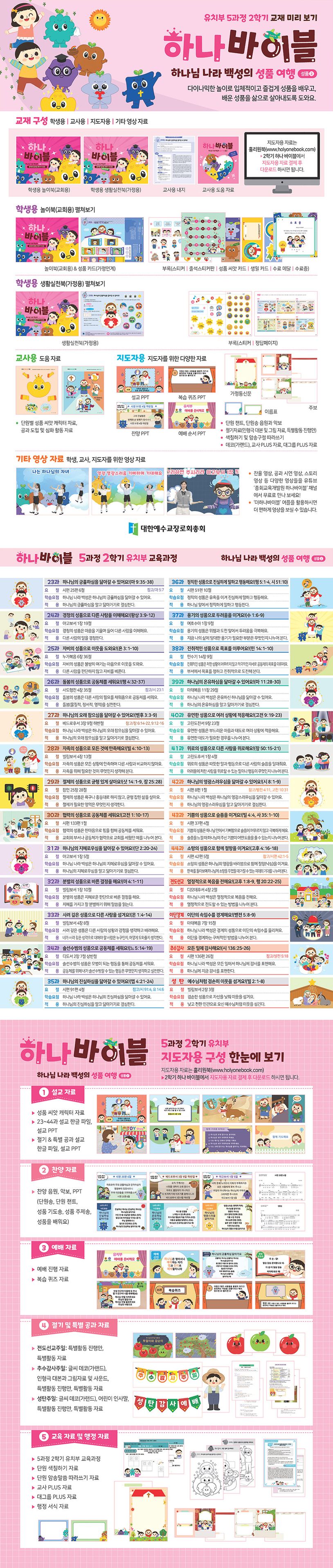 머리말총론앱(APP)활용법하나바이블교육과정교재활용법교사가이드성품정의한눈에보기7단원하나님의긍휼하심을닮아가요!8단원하나님의오래참으심을닮아가요!9단원하나님의지혜로우심을닮아가요!10단원하나님의진실하심을닮아가요!11단원하나님의온유하심을닮아가요!12단원하나님의영광스러우심을닮아가요!절기&특별공과단원별챈트부록교사용도움자료
