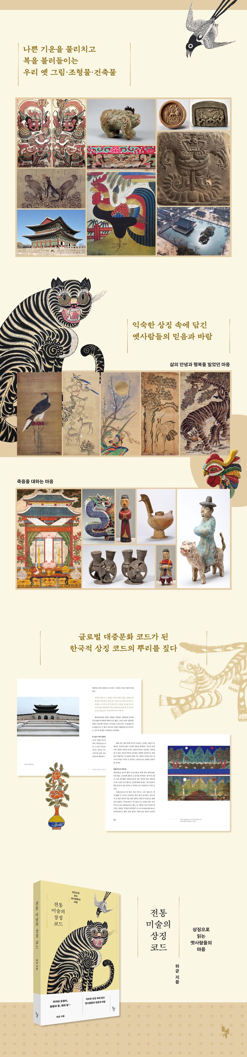 옛사람들은눈에보이지않는나쁜기운과귀신이삶을위협한다고믿었다.이를막고복을불러들이기위해궁궐과절,서민들의집안까지다양한상징적장치가곳곳에마련되었다.대문에는호랑이나문신(門神)을그린문배그림을붙였고,절의법당은무서운얼굴의귀면기와로지붕을장식해악귀가들어오지못하게했다.민간에서는마을수호신당에솔가지,붉은고추,숯을꿰어만든금줄을걸어잡귀의출입을막았다.왕릉에는돌로만든석수(石獸)가서서망자의안식을지켰다.그림·조형물·건축물등삶을둘러싼모든공간에동원된이상징들은재앙을막고복을불러들이고자하는길상(吉祥)·벽사(?邪)의장치였다.