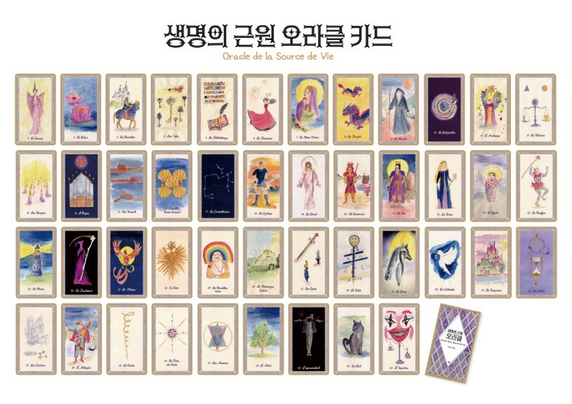 〈생명의 근원〉이라고 이름 붙인 까닭을, 두 사람의 글 사이 스며있는 호흡으로 살필 수 있다. “카드의 의미를 더 잘 이해하고, 삶의 문제에 직면하여 진화하고 균형을 잡는 데 가이드 역할을 할 것입니다. 이 책을 통해 카드를 나열하고 해석할 수 있는 다양한 방법을 찾을 수 있습니다. 우선, 쉽게 접근하기 위하여 키워드와 일부 신화적인 전체적 개요를 얻을 수 있으며, 일, 대인관계, 건강, 재정 및 영적 영역에서 점술 및 미래 예측도 포함됩니다.” 염원을 담아 뽑은 세 장의 오라클 카드가 제시하는 길을 따라 마음과 몸을 차분히 가라앉히는 연습이 첫 관문이다. 그리고, 질문을 통한 자기성찰과 스스로 자유로워지기 위한 균형주문, 다른 삶의 차원으로 가기 위한 명상 연습으로 이어진다.