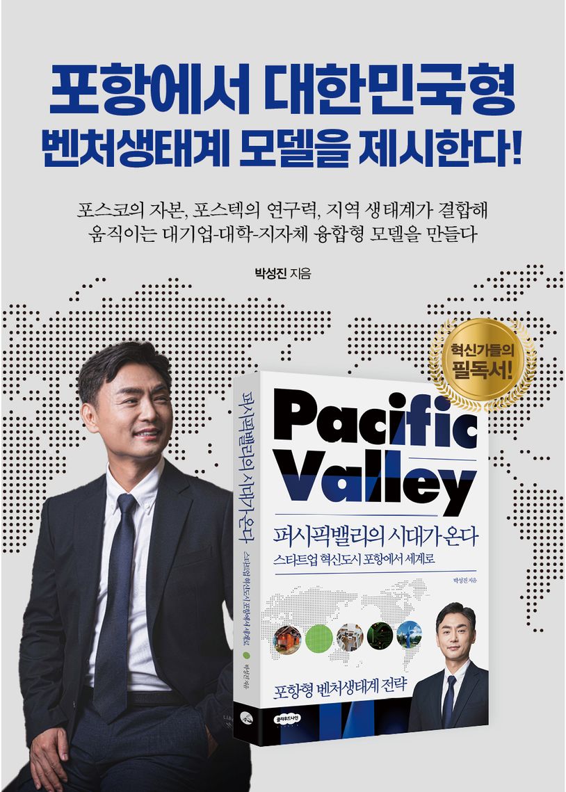 이 책은 저자 박성진 교수가 30년 동안 쌓아온 산학협력과 벤처생태계 구축 경험을 토대로 포스코, 포스텍, 산학연, 지자체, 민간 중심의 한국형 벤처생태계 모델인 퍼시픽밸리 전략을 제시하고 있다. 그는 MIT에서 직접 본 ‘연구-창업-투자-재투자’의 선순환을 한국에 이식하려 했다. 그 결과 포스코와 포스텍을 중심으로 만든 벤처생태계를 통해 근무 인원 1,100명이 넘는 100여 개 기업으로 이루어진 창업생태계가 경북 포항에 구축됐다. 또한 수도권에서 12개 기업의 본사를 포함한 50개가 넘는 기업이 포항으로 내려와 300여 개의 새로운 일자리가 만들어졌다. ‘포항형 창업생태계’가 실체로 자리 잡은 것이다.