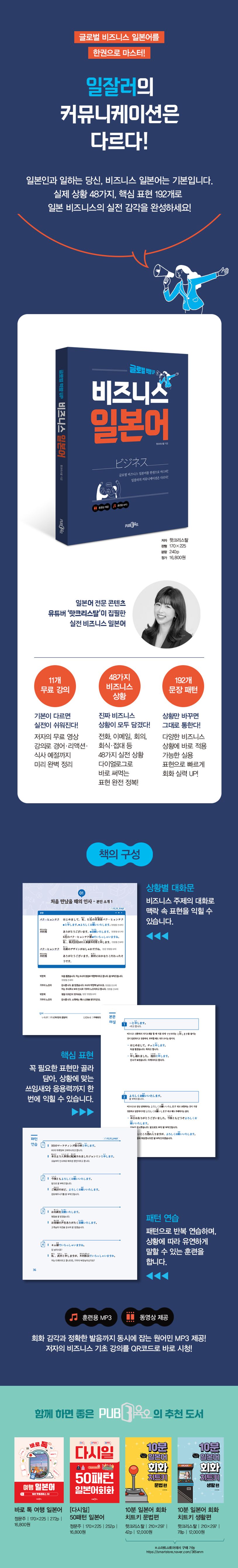 전화, 이메일, 회의, 회식 및 접대 등 총 48가지 생생한 비즈니스 상황을 바탕으로 구성된 대화문과, 192개의 필수 표현을 담았습니다. 비즈니스 현장에서 바로 써먹을 수 있는 표현만 엄선해, 단순한 암기를 넘어 상황에 맞는 정확한 쓰임새와 응용력까지 키울 수 있습니다.