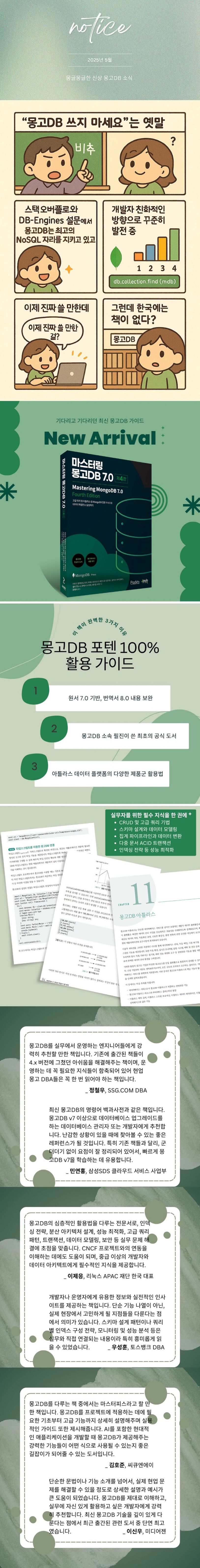 몽고DB의 활용부터 고급 기능까지 자세히 다루는 궁극의 가이드다. 몽고DB 아키텍처, 개발자 도구, 데이터베이스 연결로 시작해, 집계 파이프라인과 다중 문서 ACID 트랜잭션을 비롯한 고급 쿼리를 살펴보고, 아틀라스 백터 검색 등 AI 애플리케이션에 유용한 최신 기능도 소개한다. 아틀라스 검색, RBAC, 감사, 암호화 등 고급 기술까지 깊이 있게 다루며, 몽고DB 소속 필진이 참여한 최초의 공식 도서다. 몽고DB 전문가인 역자가 한국어판 부록으로 8.0 내용을 추가했다.