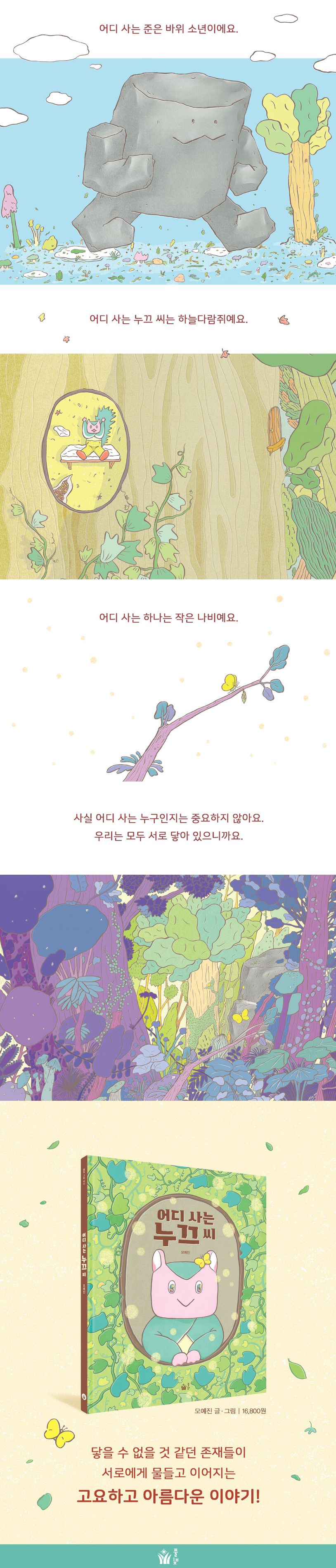 그림책 《어디 사는 누끄 씨》에도 저마다 다른 속도로 살아가는 존재들이 등장해요.
