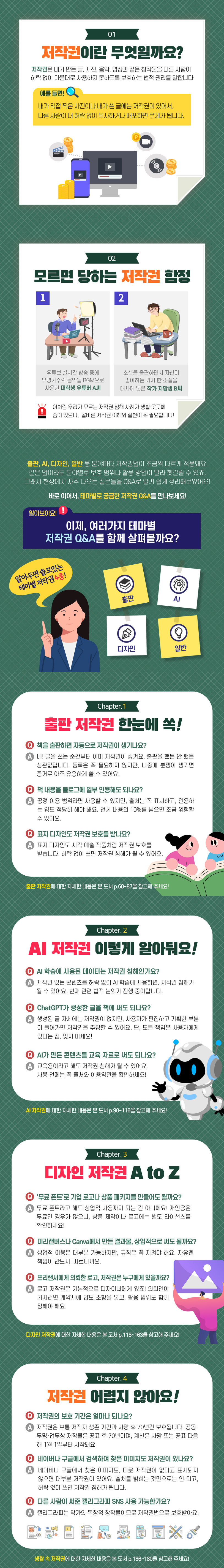 츠는 안전한가?', 'AI로 생성한 이미지를 상업적으로 사용해도 될까?', '인플루언서의 협찬 콘텐츠 저작권은?'과 같은 현실적 궁금증에 명쾌한 답을 제시합니다.