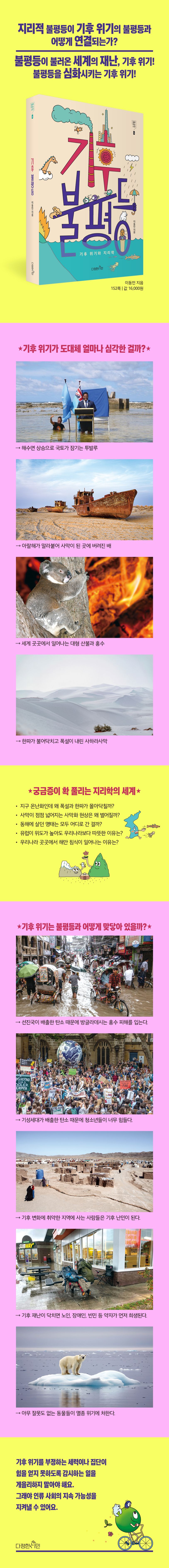 『기후 불평등』은 기후 위기에 대한 이해, 기후와 세상에 대한 지리적 시야를 넓히는 데 도움을 주는 책이다. 지리학의 관점에서 기후 위기의 의미와 심각성을 살펴보고, 세계 여러 나라에서 기후 위기가 어떤 피해를 불러오고 있는지 알아본다. 또 지리적 불평등이 기후 위기의 불평등과 어떻게 연결되는가를 되짚어 보고, 기후 위기 대처를 위해 우리는 어떤 노력을 해야 하는지 생각해 본다. - [질문하는 시민] 시리즈 4권
