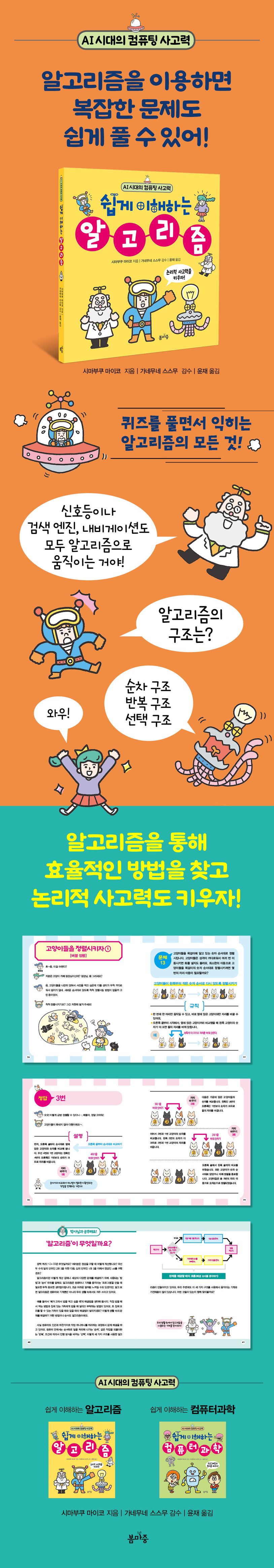 AI가 인간의 일을 대체하면서 필요해진 능력은 바로 ‘생각하는 법’이다. 봄마중 출판사의 ‘AI시대의 컴퓨팅 사고력’ 시리즈는 기계가 따라 할 수 없는 창의적인 사고, 문제의 새로운 해결책을 찾는 능력을 키워주기 위해 기획되었다.
