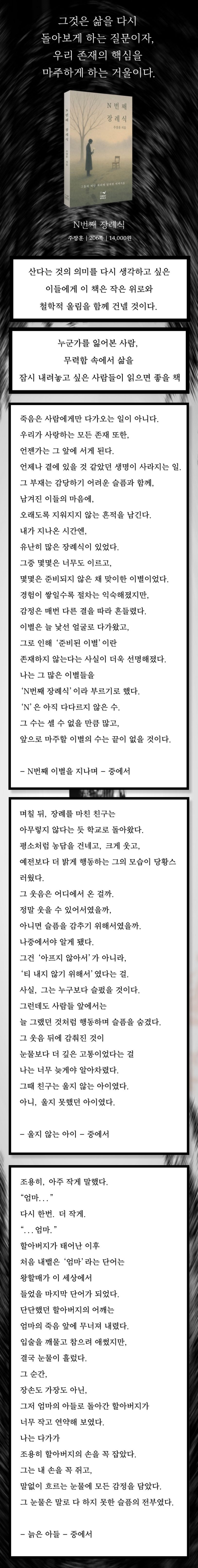 『N번째 장례식』은 수많은 이별의 순간을 지나며, 그 안에서 발견한 삶의 의미를 기록한 수필집이다. 죽음을 통해 살아 있는 우리에게 더 진지하게 살아갈 이유를 건넨다.