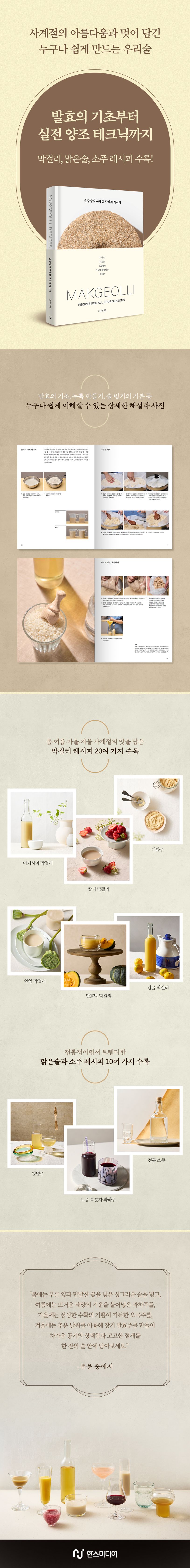 봄·여름·가을·겨울 사계절의 즐거움을 담아 누구나 직접 만드는 우리술! 봄에는 향긋한 딸기와 아카시아, 여름에는 청량한 연잎과 참외, 가을에는 부드러운 알밤과 호박, 겨울에는 상큼한 유자와 석류를 넣어 막걸리를 빚어보세요. 사계절의 맛과 멋이 담긴, 내 손으로 완성하는 인기 막걸리 레시피 20여 종을 소개합니다.