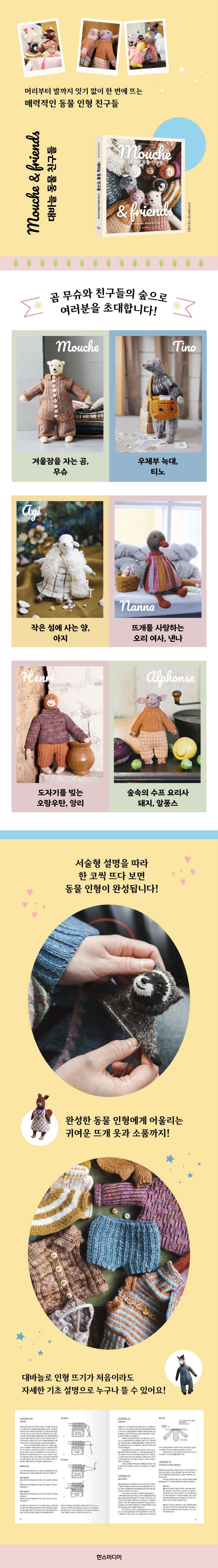 Mouche & friends 대바늘 동물 친구들 (잇기 없이 완성하는 북적북적 손뜨개 인형)