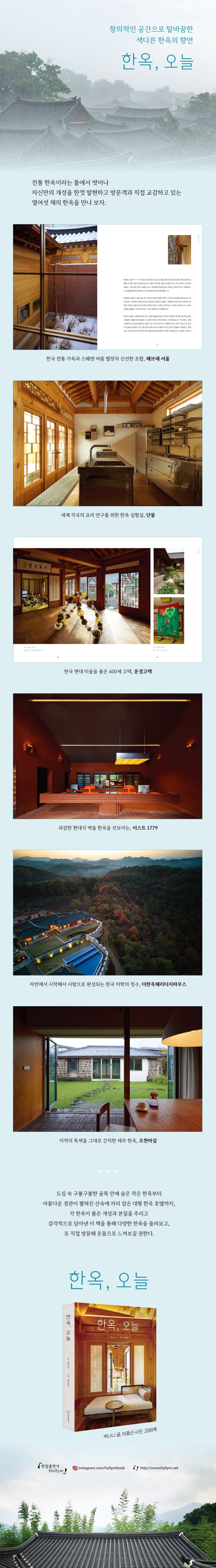 도심 속 구불구불한 골목 안에 숨은 작은 한옥부터 아름다운 경관이 펼쳐진 산속에 자리 잡은 대형 한옥 호텔까지, 이색적인 한옥과 그 한옥을 지은 사람들의 다양한 삶의 방식과 태도를 마주하며 한옥이란 무엇일까 다시 한 번 생각하게 된다. 또한 이들의 열정과 시도와 노력을 통해 발현되는 전통과 현대의 아름다운 조화는 한옥의 무한한 가능성을 보여 주며 한옥의 미래를 엿볼 수 있게 한다.