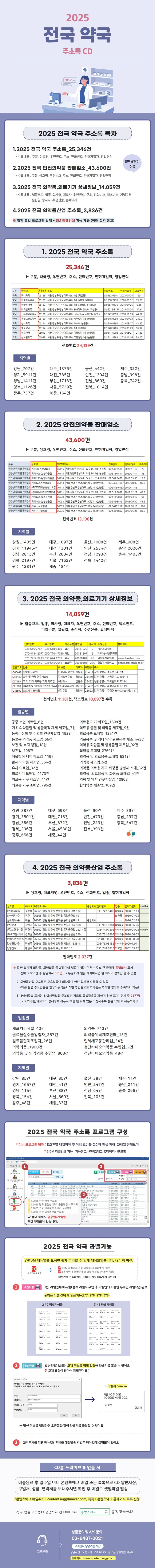 전국 약국, 안전의약품, 의약품 제조, 의약품 도매, 의료용품 도매, 약학 연구, 의료기기 등 8만 6천건 주소록이 수록되어 있다. 전국 약국 주소록은 업종별, 지역별 엑셀 저장이 가능하며, DM 라벨기능이 탑재되어 있다.