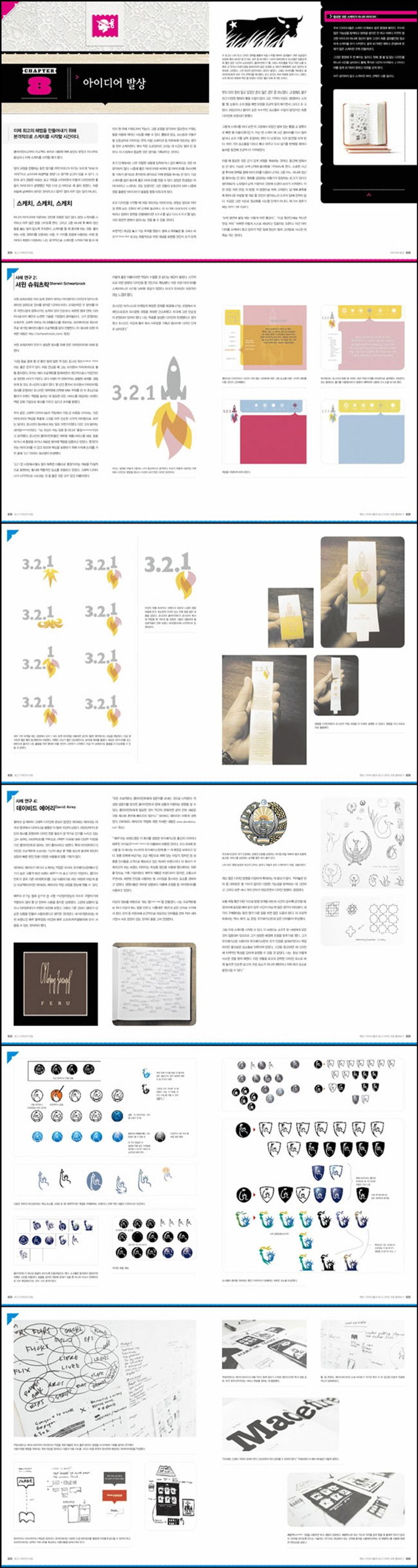 이 책은 로고 디자인의 비법을 전수해줄 스승들이 모여 만들어진 멘토십의 책이다. 아이덴티티 디자인의 대가 빌 가드너 뿐 아니라 마일즈 뉴린, 셔윈 슈워츠락, 제리 카이퍼, 펠리스 소크웰, 폰 글리슈가, 폴 호월트, 브라이언 밀러, 데이비드 에어리까지 세계 정상급 디자이너들이 전하는 노하우는 로고 디자인을 하는데 실전 감각을 키워줄 것이다.