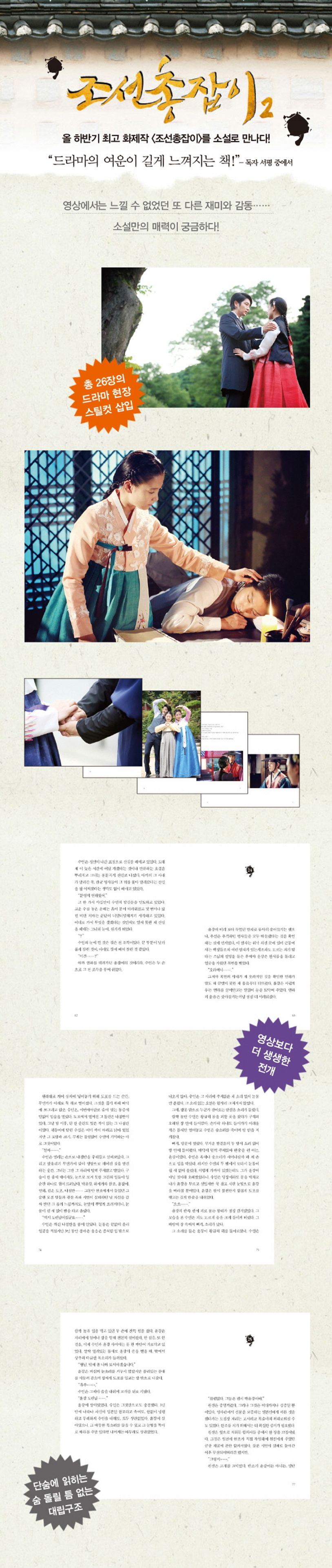 『조선 총잡이』제2권. 조선 말 19세기의 개화기를 배경으로 한다. 가족의 복수를 위해 조선의 오랜 무기였던 칼을 버리고 신식 무기 총을 선택한 총잡이 박윤강의 처절한 복수극이다. 드라마 대본을 각색하여 재구성한 것으로, 영상만으로 다 드러낼 수 없었던 인물의 심리묘사나 공간적 배경 등을 더욱 드라마틱하고 섬세하게 그려냈다. 이로써 스토리에 대한 정보가 없는 독자들은 물론, 기존에 드라마를 접했던 독자들 역시 긴장감을 늦추지 않고 소설 특유의 묘미를 즐길 수 있다.