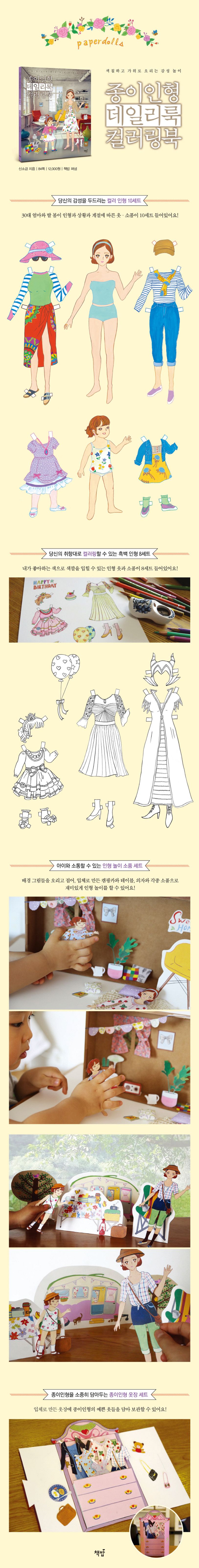 『종이인형 데일리룩 컬러링북』은 엄마의 어린 시절을 아이와 함께 공유하며 가지고 놀 수 있는 종이인형 컬러링북이다. 색칠이 완료된 엄마 인형과 아이 인형 1세트와 바로 오려서 인형 놀이할 수 있는 상황별 의상과 소품 10세트, 색칠하고 오려서 인형 놀이할 수 있는 상황별 의상과 소품 9세트로 구성했다.