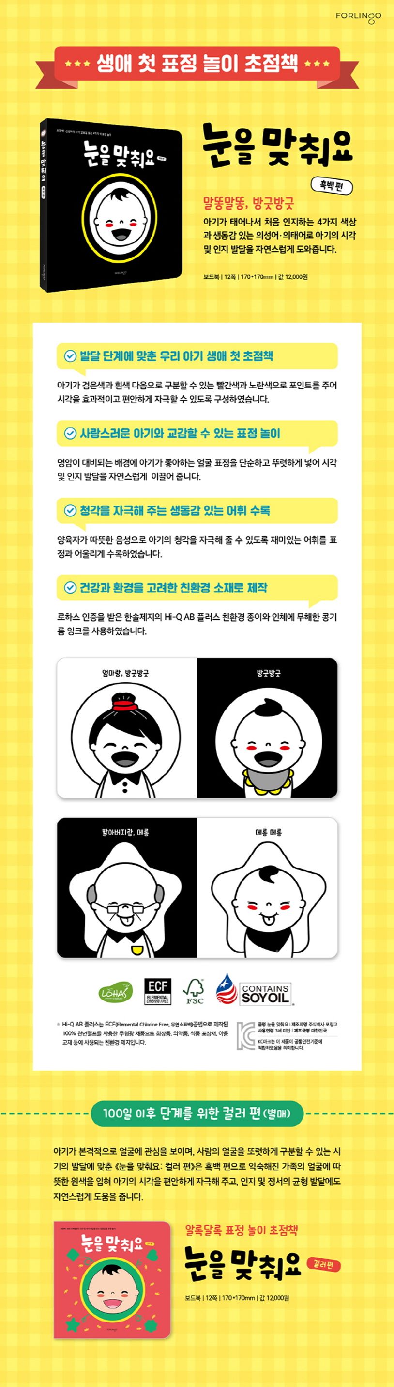 눈을 맞춰요: 흑백 편 (초점책: 신생아의 시각 발달을 돕는 4가지 색 표정 놀이)