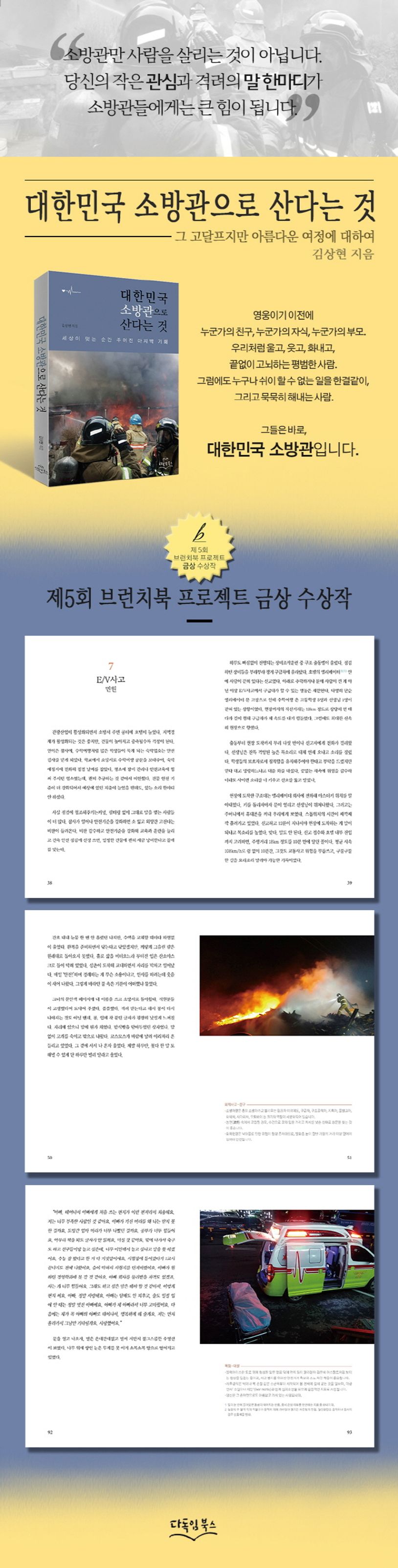 마지막으로 사람 대 사람으로 이 책의 내용에 공감해 주었으면, 소방관이라는 존재에 감사함을 느끼고, 나아가 소방관에 대한 꾸준한 관심으로 이어졌으면 하는 바람이다.