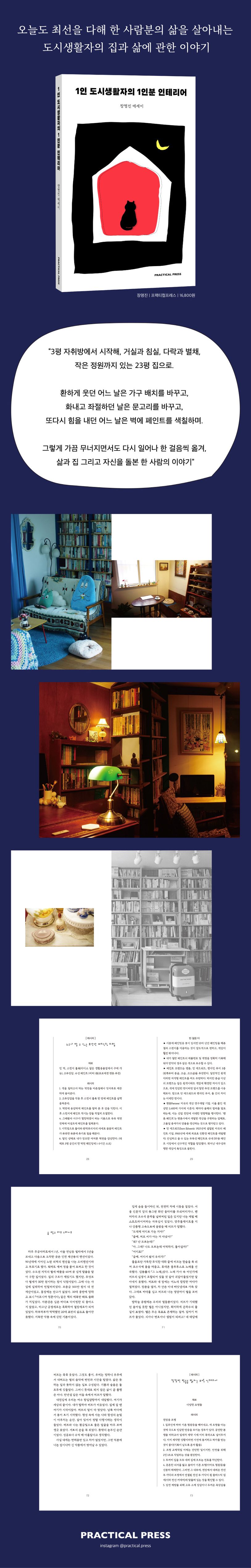 3평 자취방에서 시작해, 거실과 침실, 다락과 별채, 작은 정원까지 있는 23평 집으로. 환하게 웃던 어느 날은 가구 배치를 바꾸고, 화내고 좌절하던 날은 문고리를 바꾸고, 또다시 힘을 내던 어느 날은 벽에 페인트를 색칠하며. 그렇게 가끔 무너지면서도 다시 일어나 한 걸음씩 옮겨, 삶과 집 그리고 자신을 돌본 한 사람의 이야기입니다.