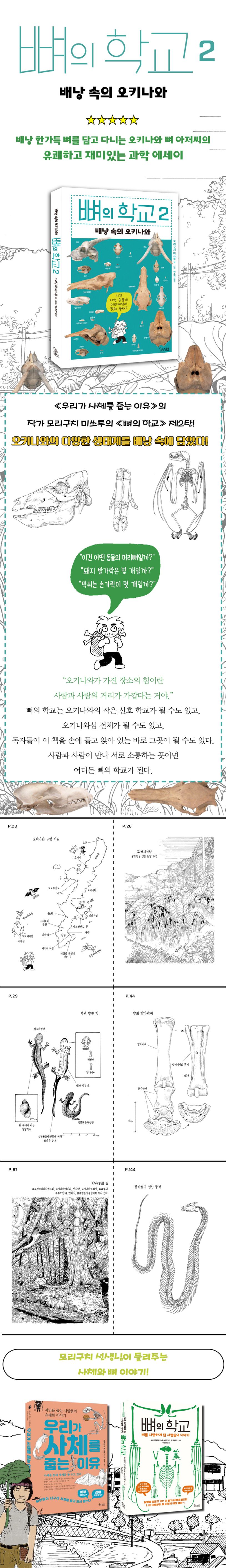 오키나와 뼈 아저씨의 배낭 속에 든 뼈들을 하나하나 꺼내어 이 책에 담았다. 어묵 속에 들어 있는 돼지 발뼈, 바닷가에서 주운 바다거북의 뼈, 반찬으로 올라온 물고기의 뼈, 석회암 균열 속에서 찾아낸 새의 뼈, 교통사고를 당한 반시뱀의 뼈, 동굴에서 주운 사슴의 뼈, 포장마차에서 파는 닭의 뼈, 집 앞에서 주운 박쥐의 뼈 등등.