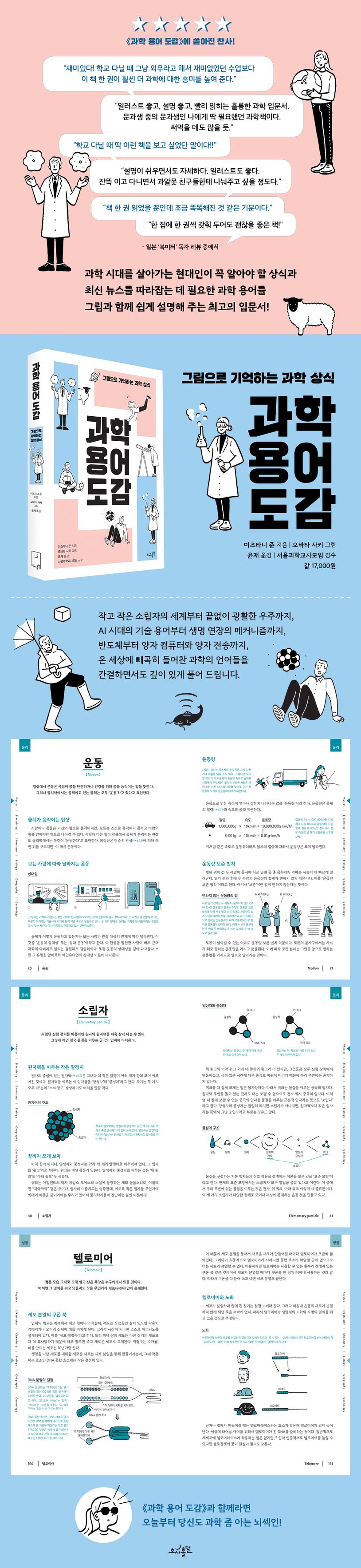 작고 작은 소립자의 세계부터 끝없이 광활한 우주까지, AI 시대의 기술 용어부터 생명 연장의 메커니즘까지, 반도체부터 양자 컴퓨터와 양자 전송까지, 온 세상에 빼곡히 들어찬 과학의 언어들을 간결하면서도 깊이 있게 풀어 주는 최고의 과학 입문서! 《과학 용어 도감》은 과학 시대를 살아가는 현대인이 꼭 알아야 할 상식과 최신 뉴스를 따라잡는 데 필요한 과학 용어를 그림과 함께 쉽게 설명해 주는 책이다.