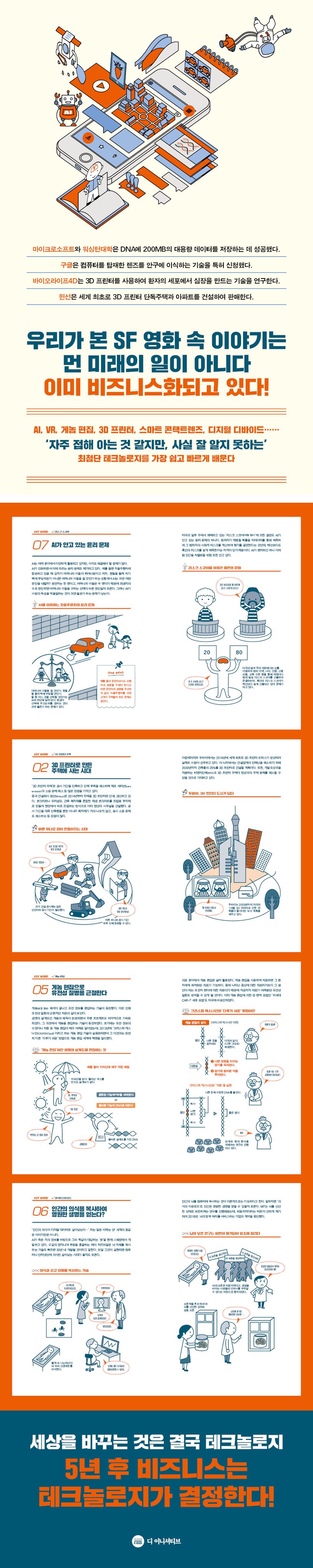 우선은 테크놀로지의 기본 개념과 전 세계적으로 주목받는 최첨단 기술은 무엇인지 그 흐름만은 다지고 가자. 그러고 나서 ‘이런 기술이 있으면 저런 것도 할 수 있지 않을까’라고 나만의 비즈니스 노트를 만들자. 이제는, 테크놀로지를 알아야 비즈니스의 미래가 보이는 시대니까.