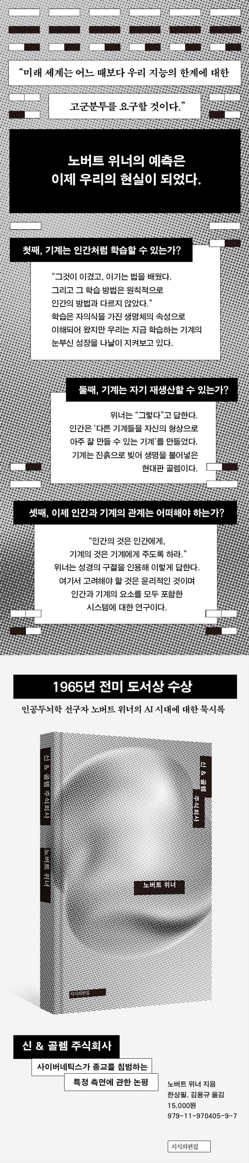 인간과 기계의 공존, 인간과 기계의 새로운 관계를 위해 위너는 인간의 오래된 믿음, 종교에 메스를 댄다. 종교란 인간의 도덕적 규범 체계를 사이버네틱스란 과학 도구를 통해 재검토한다.