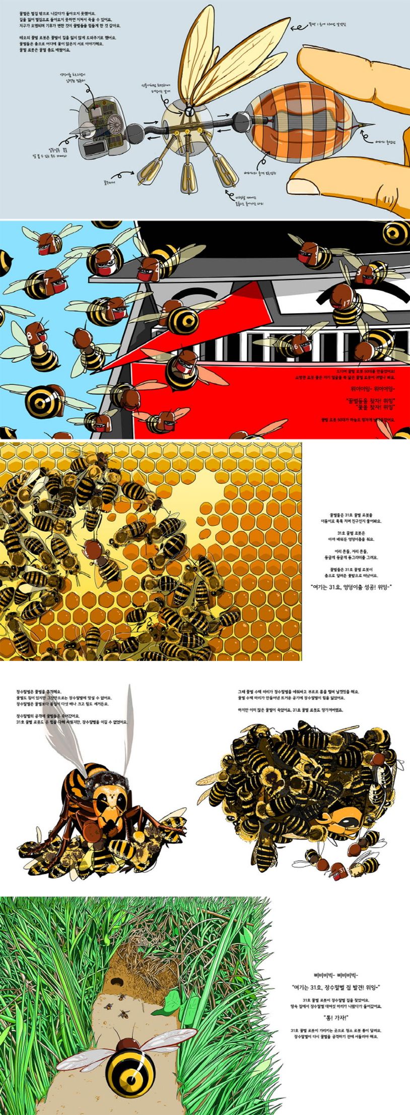꿀벌과 함께 꿀을 모으는 꿀벌 로봇들. 천적인 장수말벌로부터 꿀벌 지키기도 가능할까요?