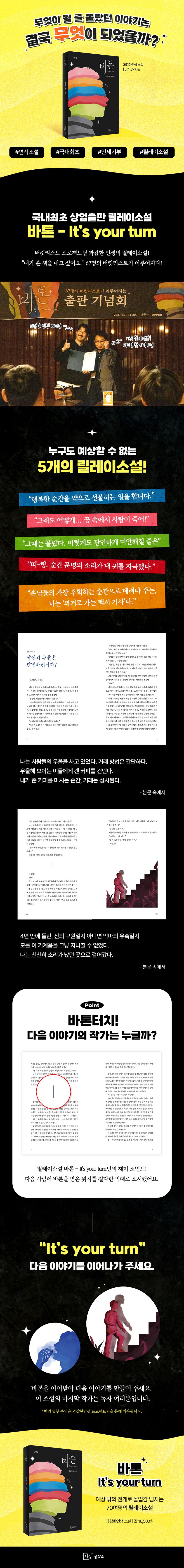 당신이 만들어 가는 이야기. 바톤을 이어받아 다음 이야기를 만들어 주세요. 이 소설의 마지막 작가는 독자 여러분입니다.