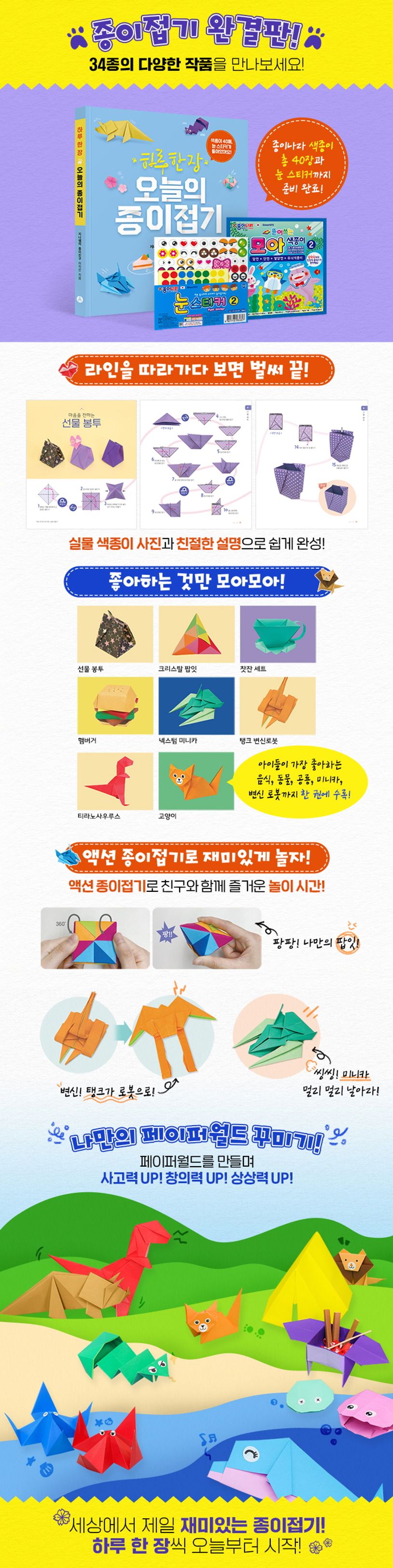 하루 한 장 오늘의 종이접기 (색종이 40매, 눈 스티커가 들어있어요!)