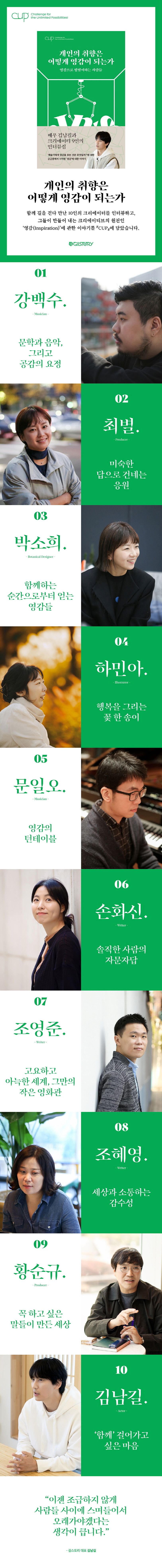 '개인의 취향은 어떻게 영감이 되는가'에 대하여 인터뷰를 시작합니다.