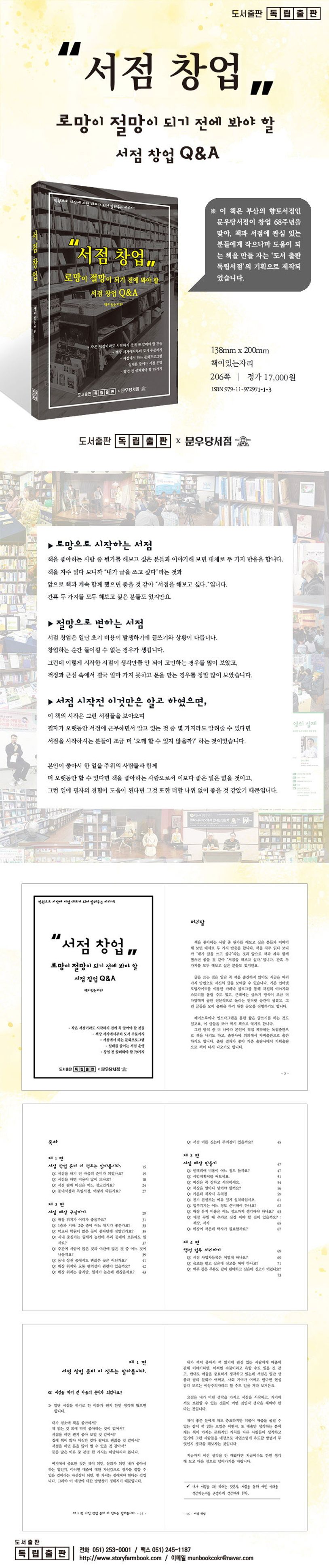 이 책은 오랫동안 서점에서 근무 중인 저자가 ‘서점 창업’과 ‘서점 운영’에 대한 기초 지식을 문답 형식으로 설명하는 책이다.