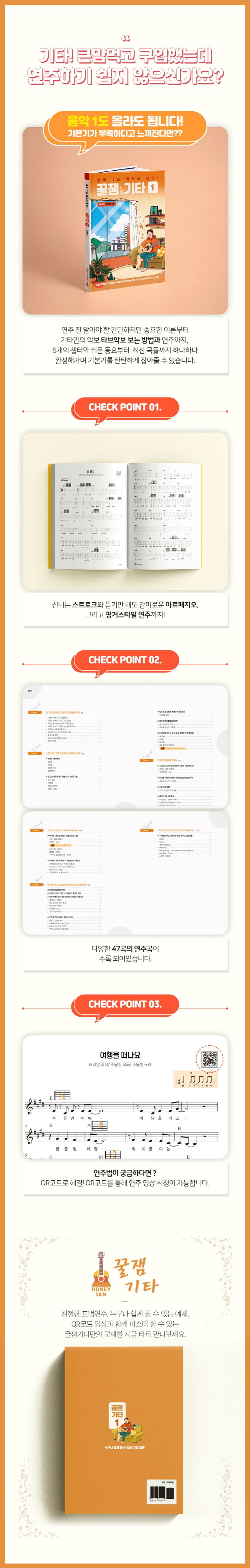 그리고 친절한 연주 영상을 QR코드로 첨부해 놓았으며 독학을 할 때 필요한 박자의 나눔과 기본기 요소들도 배치 해놨으니 이 책을 재밌게 끝냈을 때 실력이 늘어 있는 자신을 볼 수 있습니다.