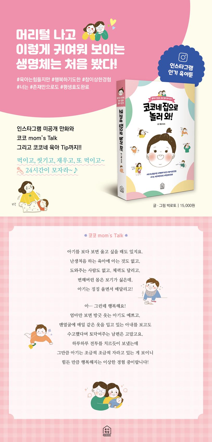 엄마가 된 작가가 하루하루의 감정을 소소하게 그린 4컷 만화에 에세이 형식의 글, 아기를 키우면서 느낀 소소한 Tip을 실은 이 책은, 아이를 임신하고 있거나 키우고 있는 사람들에게 소소한 재미를 준다.