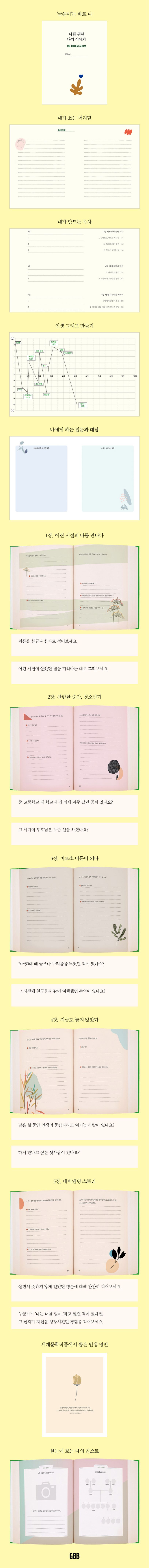 하지만 하루 한 장씩 나의 삶을 정리하는 작업을 통해 내가 어떤 사람이고, 어떻게 자라왔는지 나를 재발견할 수 있다. 또한 나에게 선한 영향력을 준 사람들에게는 고마움을, 나를 힘들게 한 사람들에게 용서와 화해를 보낼 수 있을 것이다.