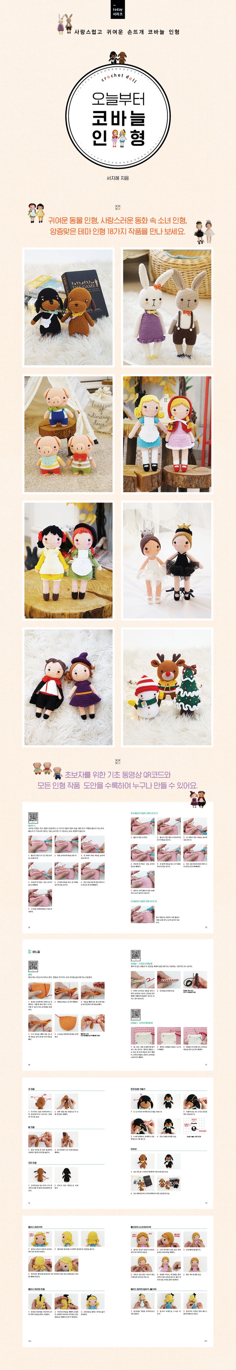 코바늘 인형을 처음 시작하는 막막함을 해결해 주기 위해 작품의 모든 과정을 친절하고 자세하게 사진과 글로 설명하여 처음 시작하는 초보자도 코바늘 인형 만들기를 도전하는 데 어려움이 없도록 만든 책이다. 또한 동영상 QR코드를 기초 과정에 수록하여 동영상으로 더 자세하고 쉽게 배울 수 있도록 하였다. 그리고 한 가지 도안으로 여러 스타일의 인형을 만들 수 있는 여러 가지 응용 노하우를 책에 담았다.