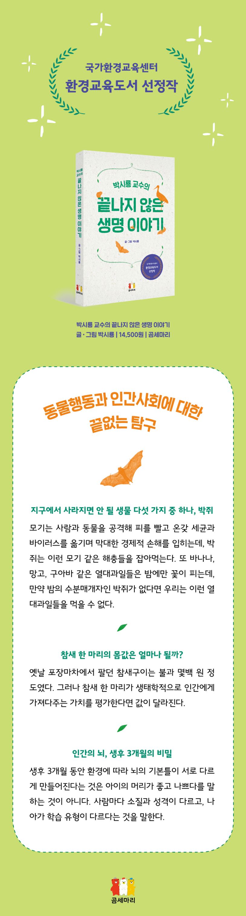 오랫동안 대학에서 연구하며 후학들을 가르친 저자는 동물들의 짝짓기, 먹이활동, 집짓기 같은 행동 양식뿐만 아니라 도구 사용과 문화 활동 같은 우리가 미처 알지 못한 흥미로운 사회적 행동들을 들려준다. 그러면서 한편으로는 동물들의 서식지 보호와 멸종위기종을 관리하는 문제에 대해 주의를 환기시키며 대책 마련을 모색한다.