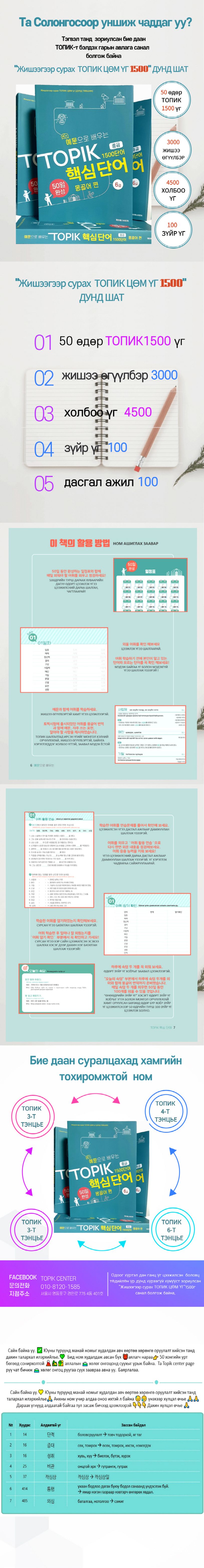 [예문으로 배우는 TOPIK 핵심단어 50일 완성 (중급)1500단어 - 몽골어 편] 은 국내외 거주하는 몽골인들이 TOPIK II(중급) 시험을 준비하는데 필요한 어휘를 50일안에 익혀나갈 수 있도록 도움을 주고자 만들었습니다.