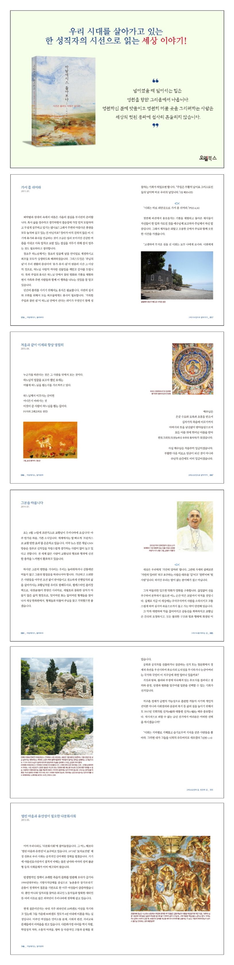 사제의 글이지만 세상과 사람을 향한 목소리다. 가톨릭신자들에게는 교회의 가르침 안에서 세상을 읽도록 이끌고, 비종교인들에게는 넌지시 교회의 목소리를 건넨다. 그날의 권두언들은 또다시 독자들을 초대한다. 세상에 관심을 가지라고, 사랑하자고, 잘 판단하고 선택하고 책임을 지자고! 저자는 성 아우구스티노의 말을 빌려 촉구한다.