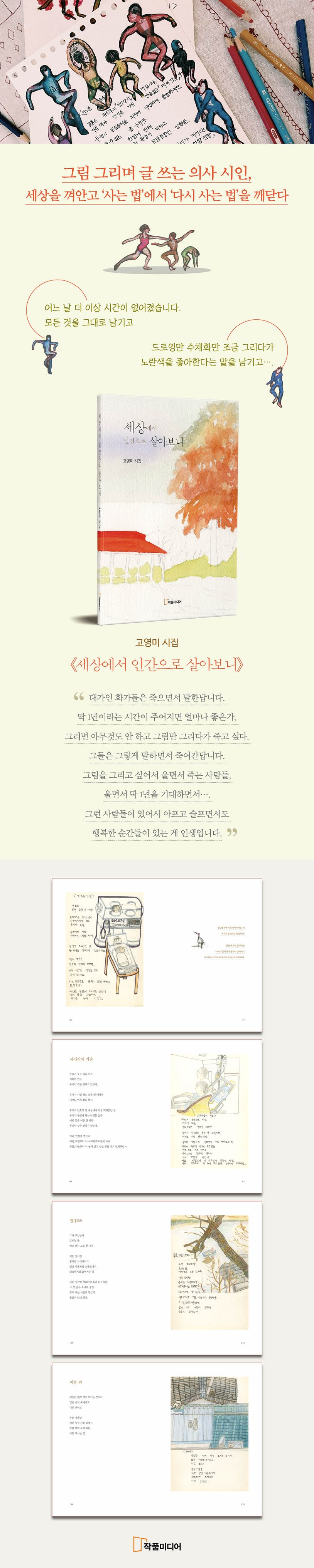 아픔은 언제 어디서나 우리와 함께 머물고, 자라고, 상처를 남기고, 그리고 힘들게 승화해간다. 삶의 현장, 새로운 생명이 세상을 만나는 곳에서 무수한 사람과의 관계를 만들어가는 시인도 인간관계가 어렵다고 실토한다. 그런 관계 속에서 ‘초심’을 생각하는 시인은(「관계」), 황혼 속에서 부모의 죽음을 인지하고, ‘죽는 법과 다시 사는 법’을 배운다(「황혼」). 그림 그리며 글 쓰는 의사 시인 고영미의 작품들은 이렇듯, 처음에는 낯익게 다가왔다가 결국에는 어떤 묵직한 깨달음 한 토막을 던져놓고 간다.