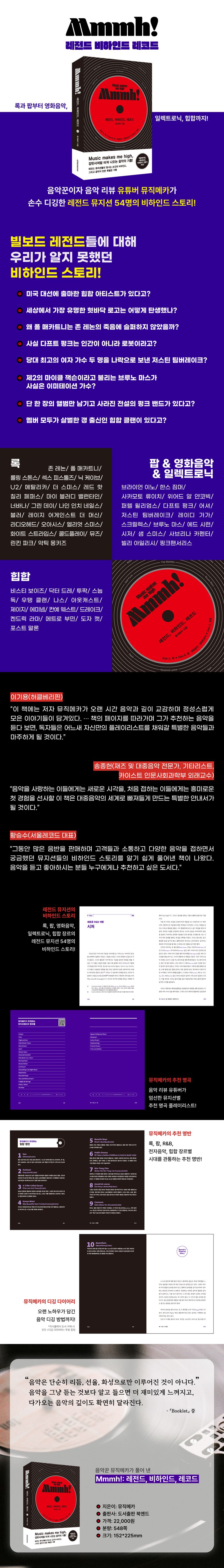 장르를가리지않는진정한음악꾼답게,SideA에서는록,SideB에서는팝,영화음악,일렉트로닉,그리고SideC에서는힙합까지총5개의장르를넘나들며뮤지션54명의음악과그들이남긴비하인드스토리를깊이있게다뤘다.무언가의‘덕후’,‘애호가’,‘마니아’,‘전문가’가된다는것은단순한취향을넘어,그대상에대한깊이와넓이를동시에겸비한다는의미일것이다.어떤이들은한곡,한장르의매력에깊이빠져드는것에서시작하고,또어떤이들은폭넓은음악세계를탐험하는것에서출발한다.