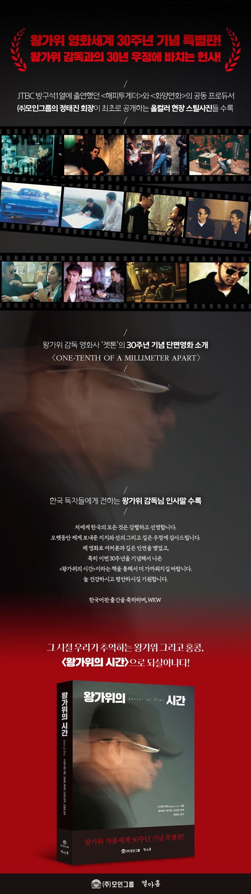 세기말 홍콩의 잃어버린 추억에 대한 영화적인 회복『왕가위의 시간』. 10년 이상 전 세계 영화팬들과 비평가들에게 깊은 인상을 주어 온, 홍콩을 대표하는 영화감독 왕가위의 작품 세계 30주년을 기념하는 책이 출간되었다. 책은 그의 독특한 미장센과 스토리텔링을 1990년대 홍콩이라는 시대적 맥락에 비추어 해석한다. 이는 그의 영화가 1997년 중국에 반환되기 이전의 문화적, 정치적 불안을 겪었던 홍콩과 중국홍콩특구로 이행하는 1997년 이후의 홍콩을 연결하는 다리를 놓기 때문이다.