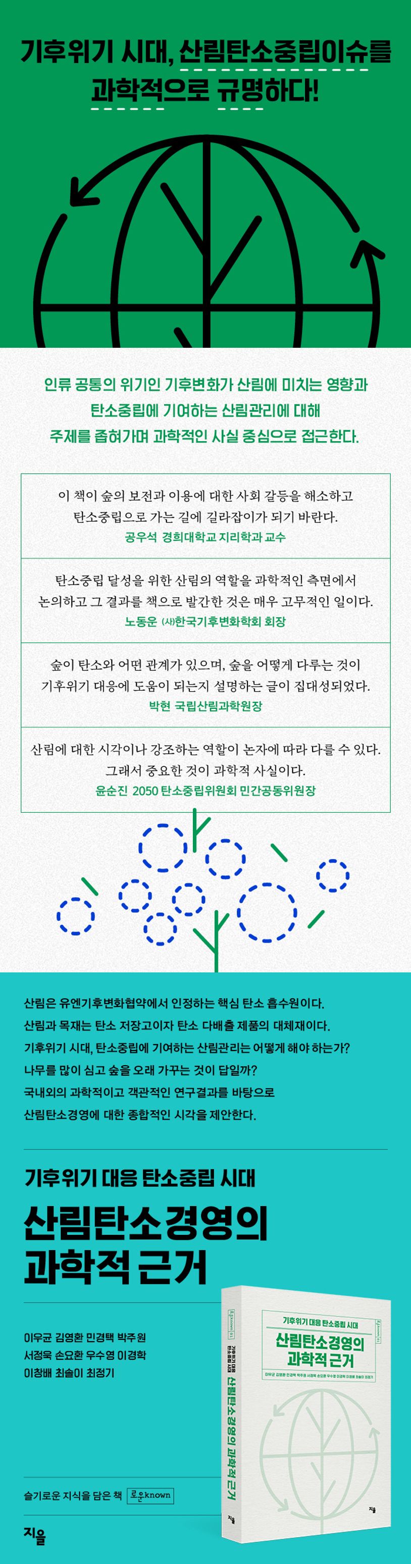 《기후위기 대응 탄소중립 시대, 산림탄소경영의 과학적 근거》는 인류 공통의 위기인 기후변화가 산림에 미치는 영향과 탄소중립에 기여하는 산림관리에 대해 주제를 좁혀가며 과학적인 사실 중심으로 접근한다.