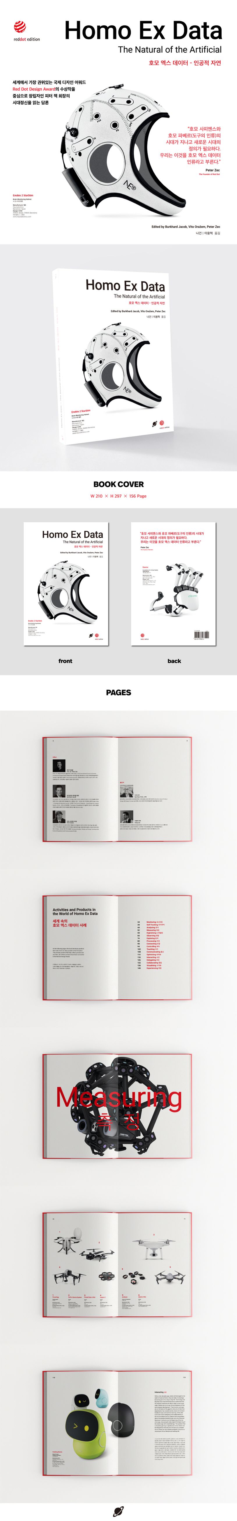 『호모 엑스 데이터 : 인공적 자연』은 '레드닷 어워드'를 수상한 데이터 기반 제품 디자인의 사례와 그에 대한 데이터 인류의 적응에 대한 시대정신을 담고 있는 책이다. 레드닷 디자인 어워드의 설립자인 피터 젝 회장은 직립보행을 이루어낸 호모 사피엔스와 도구를 사용하기 시작한 호모 파베르 이후의 인류를 정의내리고 있다. 4차 산업혁명 이후의 도구라는 개념은 데이터 기반으로 사용하는 것을 전제로 하며 지금의 인류는 새롭게 정의되는 용어인 ‘호모 엑스 데이터’라고 명명한 것. 현재 우리가 매일 뉴스에서 접하고 있는 메타버스(Metaverse), 블록체인(BlockChain), AI(Artificial Intelligence), 그 외 스마트폰을 이용한 모든 서비스가 데이터 기반의 산업에 속하며 이것을 도구로 사용하는 인류가 바로 호모 엑스 데이터이다.