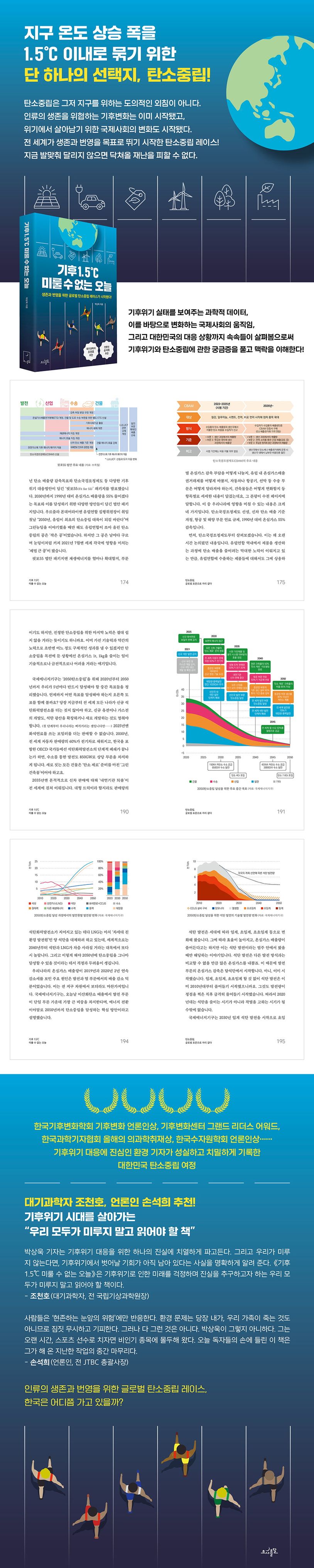 《기후 1.5℃ 미룰 수 없는 오늘》은 기후위기 앞에서 전 세계가 어떤 노력을 기울이고 있는지, 또 우리나라는 어떤 과정을 거쳐 탄소중립을 선언했으며 어떤 숙제를 당면하고 있는지를 과학적 데이터와 국제 보고서를 바탕으로 조목조목 짚어 본다. 인류의 생존과 번영을 위한 글로벌 탄소중립 레이스, 한국은 어디쯤 가고 있을까?